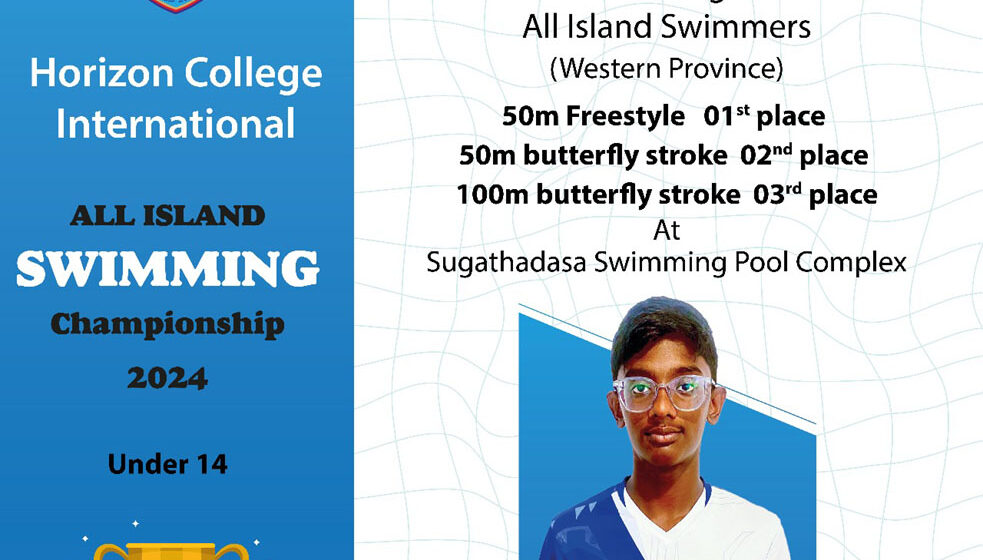 Congratulations to our champ, Ipshitha Perera, from Horizon College International, for an outstanding performance at the 49th Sri Lanka Schools Swimming Championships 2024! Ipshitha secured 1st place in the boys’ under-14 50-meter freestyle and 2nd place in the boys’ under-14 […]