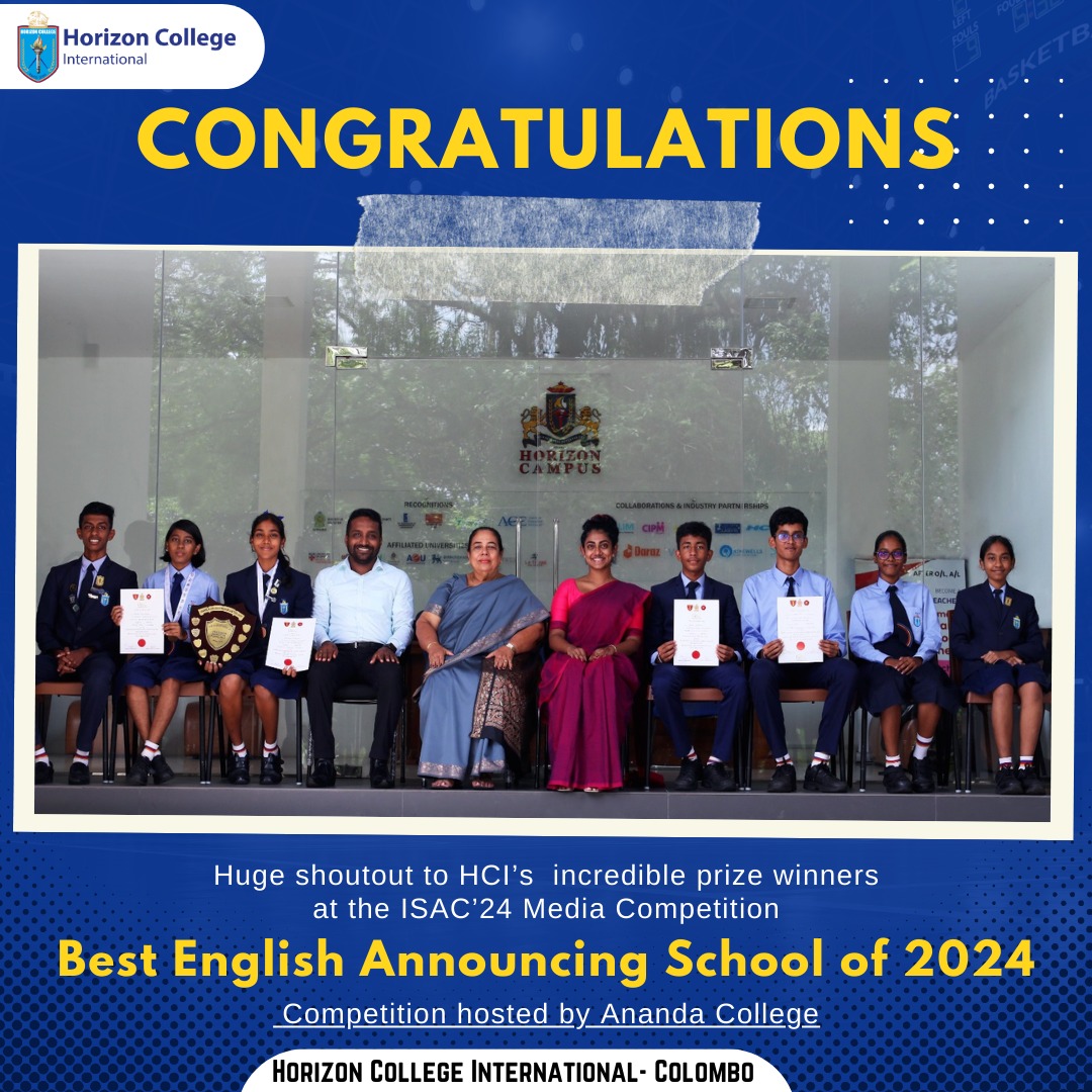 We’re beyond thrilled to announce that HCI has been awarded “Best English Announcing School of 2024” at the prestigious ISAC’24 Media Competition hosted by Ananda College!