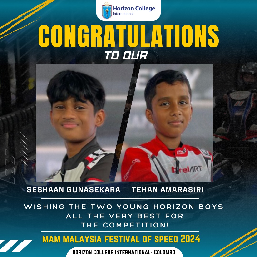 We sincerely congratulate our talented young racers, Seshaan Gunasekara, and Tehan Amarasiri, for representing HCI at the MAM Malaysia Festival of Speed 2024!